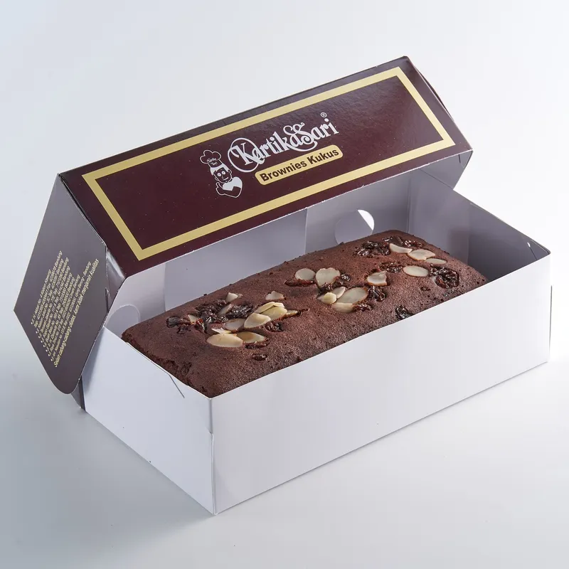 Brownies Kukus perpaduan Coklat, dengan isi coklat lumer dan toping Kacang Almond beserta Raisin. Masa Ketahanan 4 Hari